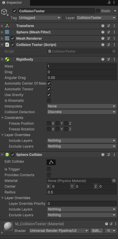 Rigidbody옵션 역시 하나만 물리 속성을 부여하면 Collision이 동작해 충돌 물리연산을 돕는 것을 확인 할 수 있다.
