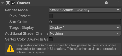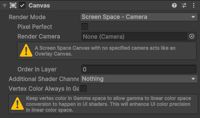 UI 요소는 이 카메라에 의해 렌더링되며, 이는 카메라 설정이 UI의 모양에 영향을 미칠 수 있다.